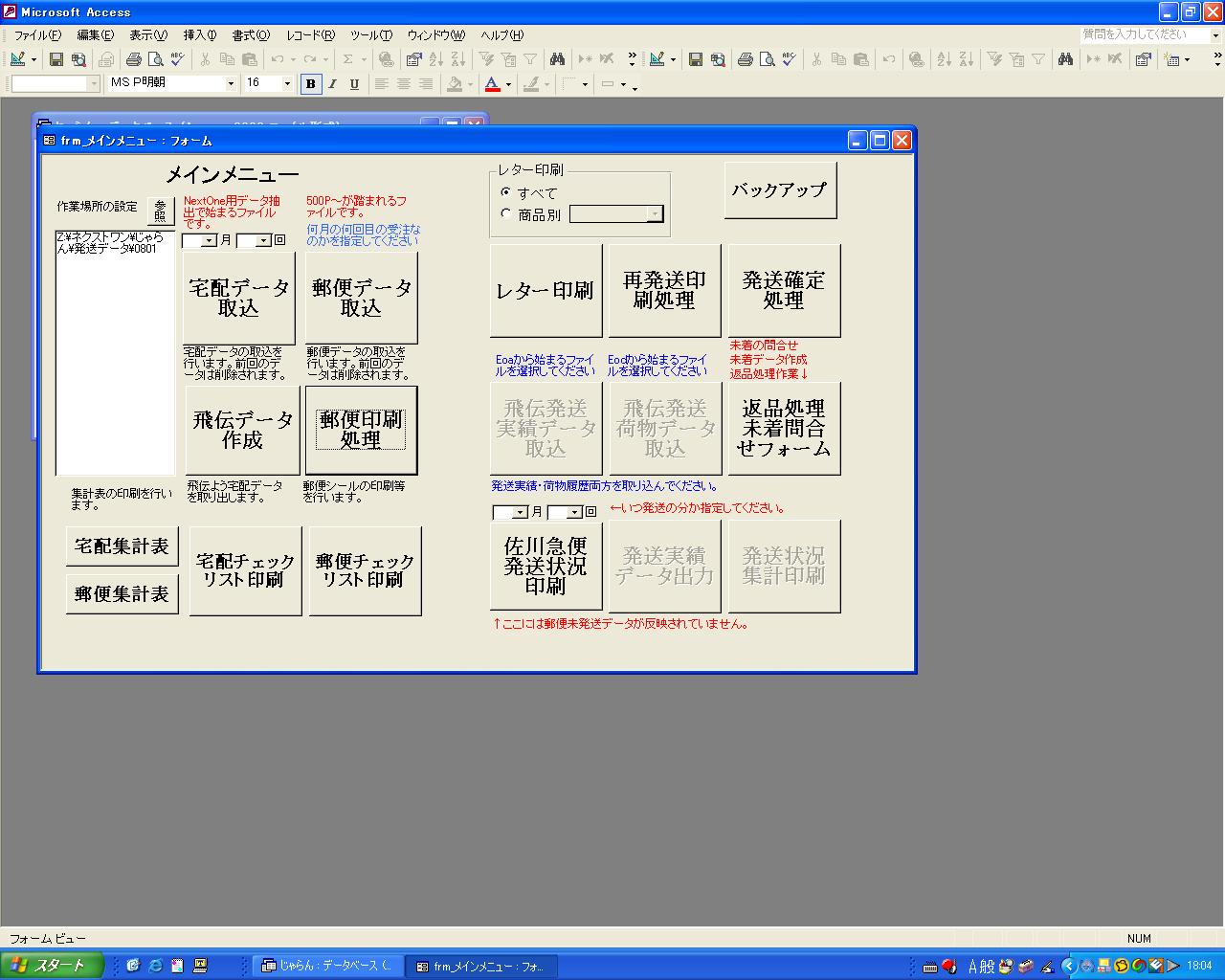 毎日、または定期的にある仕事(お中元の発送やネットショップ等の通信販売の発送や在庫管理、定期的に発行される冊子など)はその業務専用のシステムを開発して、作業をしております。